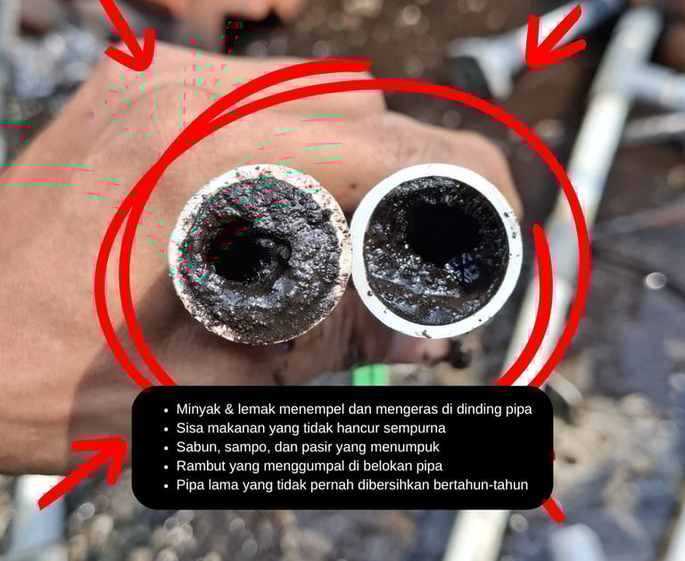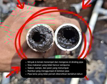 Masalah saluran air mampet hampir selalu disebabkan oleh penumpukan kotoran yang tidak terlihat